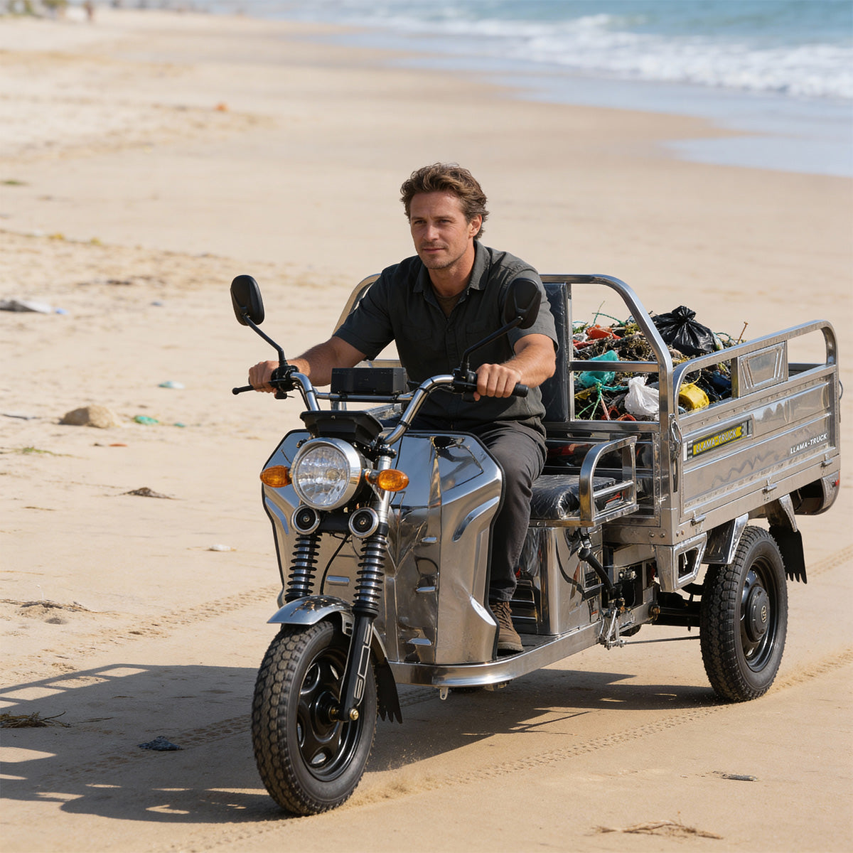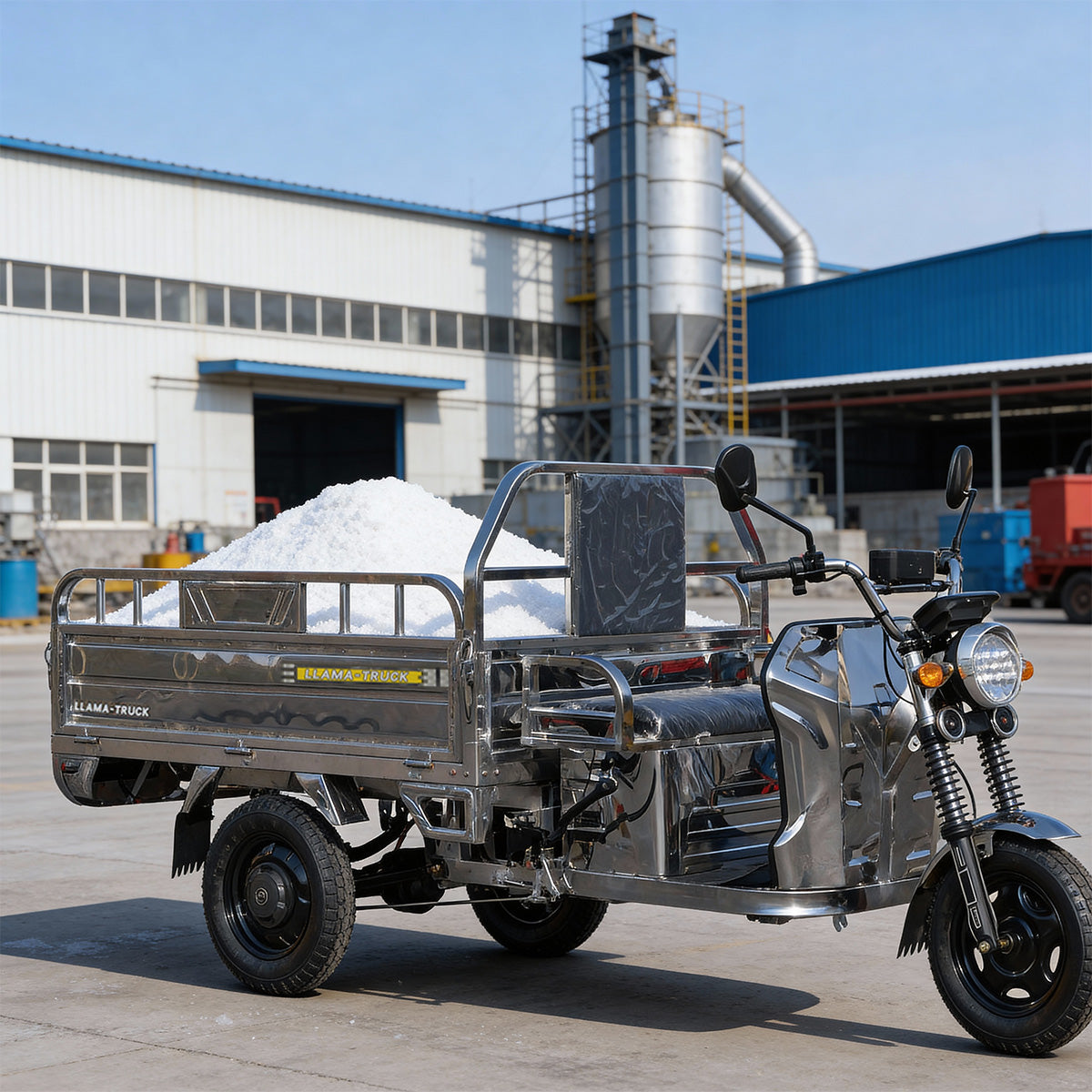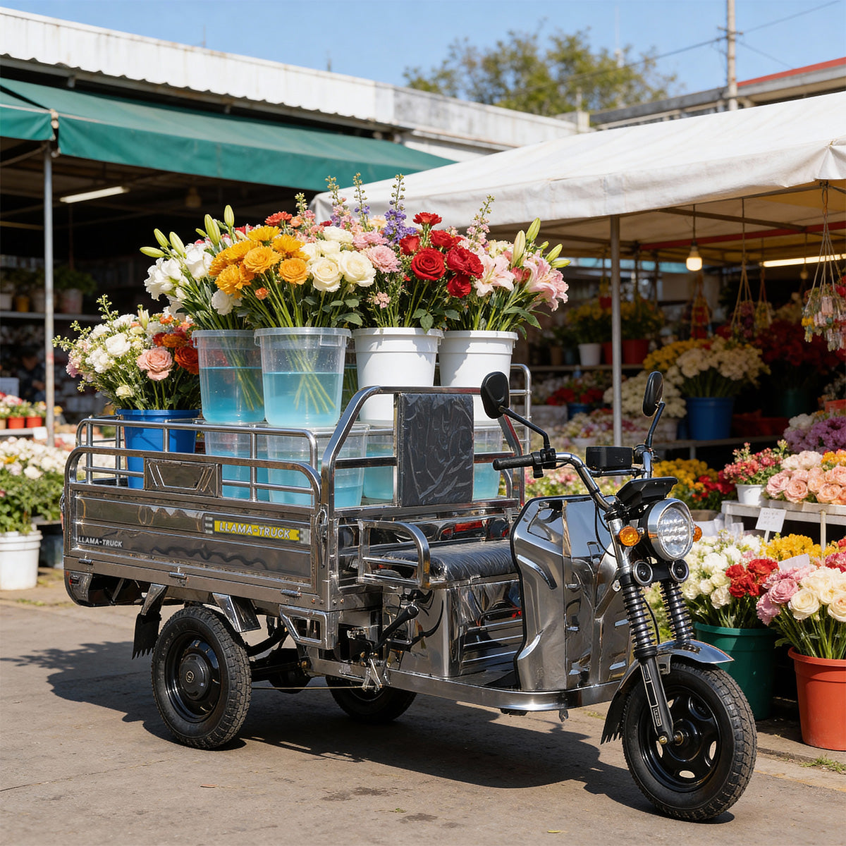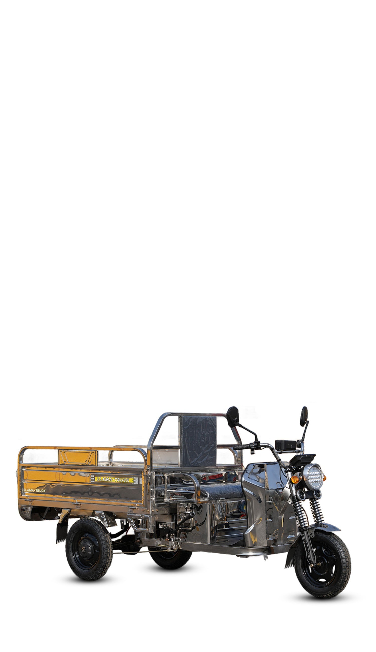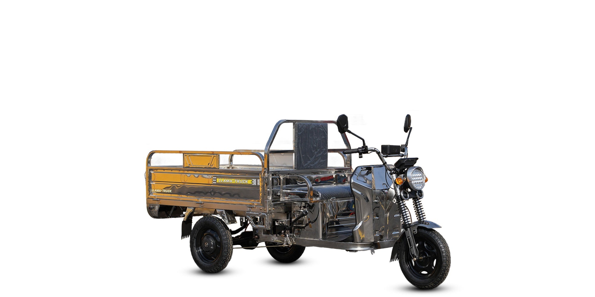 The LLAMA Truck Platinum is the premium choice for durability and style. Distinguished by its Full Stainless Steel Body, this electric tricycle is built to resist rust and corrosion, making it ideal for coastal areas, humid climates, or anyone who wants a fleet that stays looking new.