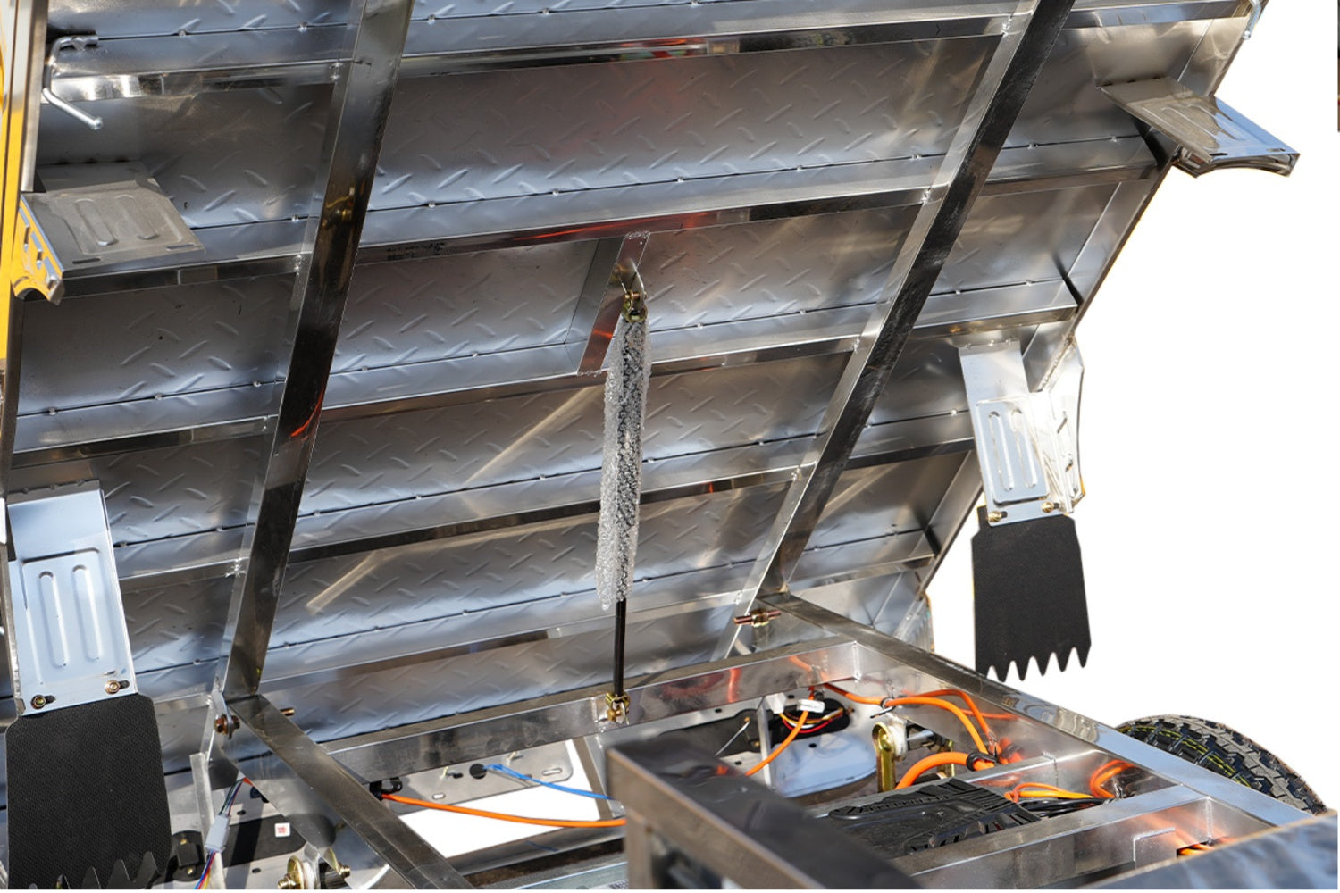 Under the polished exterior lies a workhorse equipped with a reliable Manual Mechanical Dump Bed. Designed with a balanced pivot point and gas-strut assist, it allows for easy, one-person tilting to unload cargo without the complexity or maintenance of hydraulic systems.